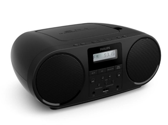 Boombox-style multi-source CD player. Play physical CDs in any format, and it offers clear FM radio, Bluetooth streaming and more. There's a socket for headphones and a handy companion app too.