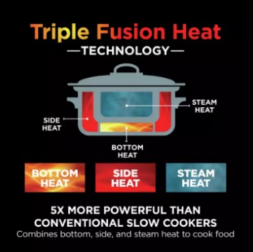 Ninja Foodi PossibleCooker is 5x more powerful than conventional slow cookers. Unlike traditional slow cookers which only use side heating elements, Triple Fusion Heat combines heating elements in the sides and base with steam heat to unlock even more cooking options – so you can also sear, sauté and simmer hearty meals to share, just like you would on the hob. Cook faster than conventional ovens*, with no preheat.