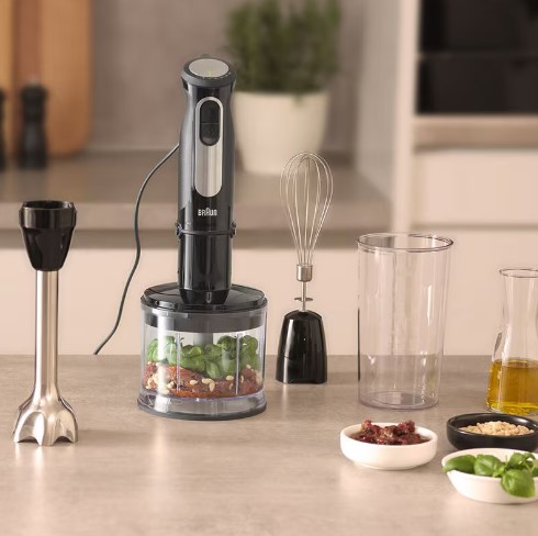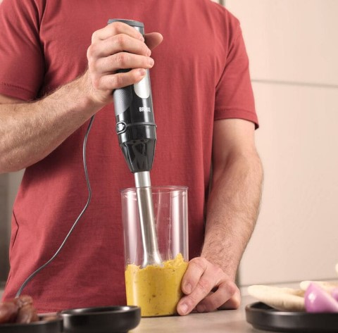 Up to 4 x finer results*. An extra milling blade and 6 inner ribs create more interaction between food and the blades. *Vs. Braun MQ10.000P on almond milk.