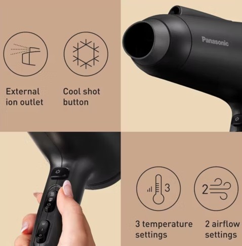Experience the perfect combination of speed, protection, and shine with the Panasonic EH-NE85 Heat Protection Ionic Hair Dryer.