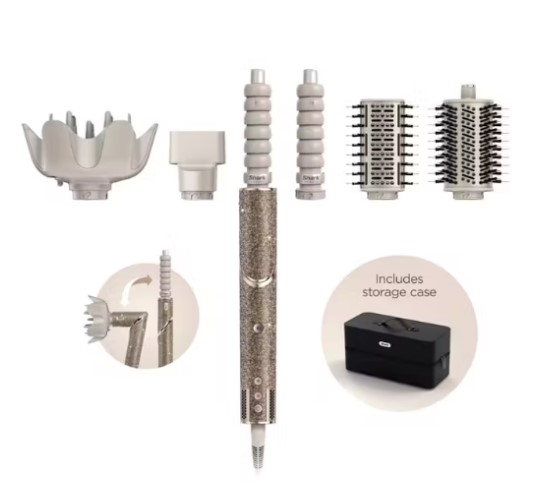 - Includes 5 stylers: 32mm Auto-Wrap Curlers, Paddle Brush, Oval Brush, Concentrator, Diffuser & Storage Case