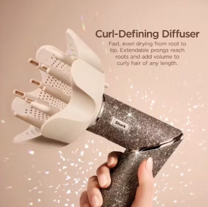 Curl-Defining Diffuser: Fast drying from root to tip. Purposefully designed to lift and define your natural curls, with extendable prongs to reach and lift roots.
