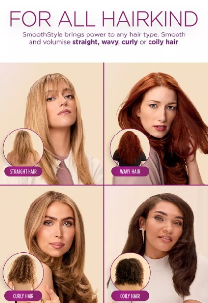 Whether your hair is naturally straight, wavy, curly or coily, Shark SmoothStyle is engineered to create smooth, full-body styles on all hair types. *Vs traditional flat irons. **vs air drying, based on 600-person survey.